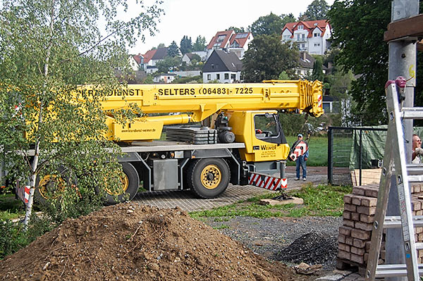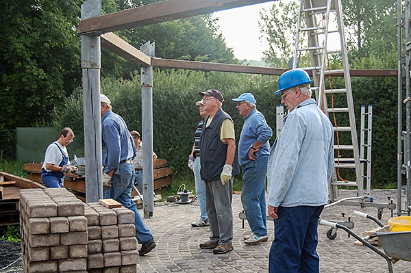 Nach der Baugenehmigung erfolgt der Aufbau der Grillhütte samt Pflastersteine durch die Montagsturner und Transport nach Idstein mit Hilfe von Wolfgang Heller, Stefan Michel und der Fa. Stricker.