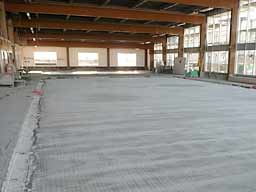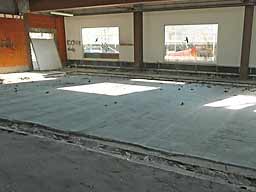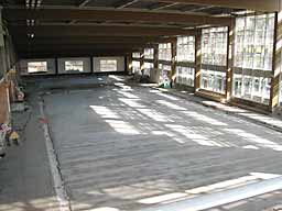 Endlich ist der Hallenboden fertig und begehbar, so dass mit der Dachsanierung begonnen werden kann.