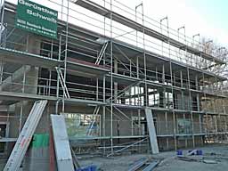 Gerüste sind schon aufgebaut.