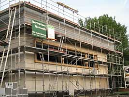 … die Montage der abschließenden Dacheindeckung fast vollendet.
