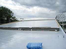 Die Dacharbeiten sind fast abgeschlossen: die äußere Verkleidung des Daches ist fast vollständig angebracht …