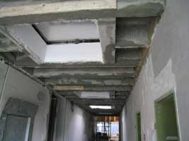 Ca. 50 % der Decken-Betonrippen im Hauptflur wurden in Eigenleistung saniert.