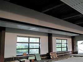 Im Halleninneren werden zur Zeit die senkrechten Schürzen an der Decke zwischen den einzelnen Deckenfeldern montiert.