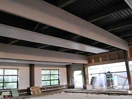 Am 20.06.09 wurden die Unterkonstruktionen für die Basketballkörbe befestigt. Weiterhin wurden auch schon Traversen für andere Sportgeräte montiert. Ebenso die Halterung für den Trennvorhang.