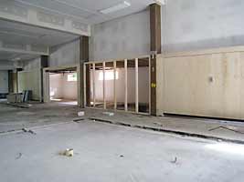 Die Gipskartonwände im Bereich der Nebenräume wurden nun nach Einbau der Elektroverkabelung und der Mineralwolldämmung verschlossen und gespachtelt.