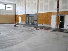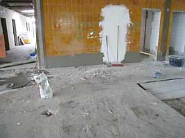 Entlang der Hallenlängswand an den Umkleiderräumen wurde der Sockel ebenfalls in Eigenleistung beigeputzt.