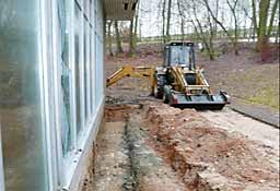 Die Bauarbeiter sind dabei, im Außenbereich für die Geräteschuppen die Fundamente zu legen.