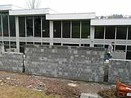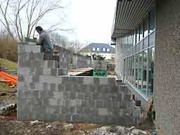 Die Abmauerung für die Geräteräume kommt gut voran. Die Mauern wachsen.