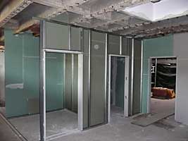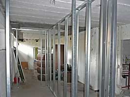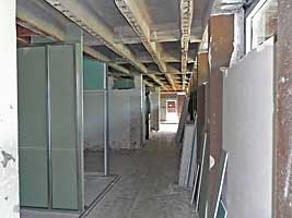 Im Flurbereich sind die Stellwände für verschiedene Räume und das Büro installiert.