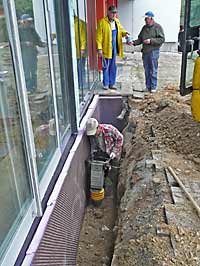 Im Eingangsbereich und am gesamten Gebäude musste noch die Dämmung angebracht werden.