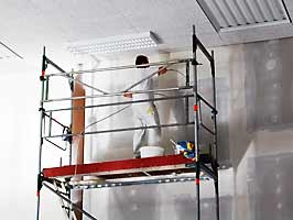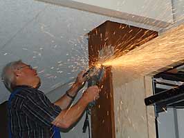 Die Halle wird gestrichen. Wolfgang Heller selbst legt Hand mit der Flex an.