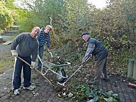 Auch das gehört dazu: Säubern des Außenbereiches durch Helfer aus verschiedenen Abteilungen.