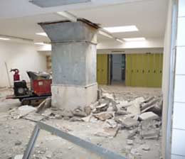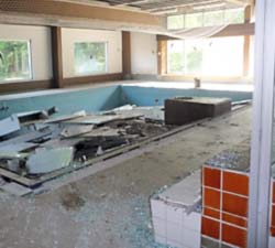 Am 19. September rückte die Firma an, die das alte Hallenbad von nicht benötigten Materialien wie Fliesen, Metallschränke usw. befreite. Sie begannen im Hallenbad. Der Keller folgte danach.