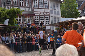 Ich komme wieder!“ Genau so, wie diesen Jogger bei seiner Premierenteilnahme, der im Zieleinlauf erschöpft, aber glücklich und strahlend in die Arme seiner Frau fällt, konnte der Idsteiner Stadtlauf auch in diesem Jahr Sportler und Zaungäste gleichermaßen begeistern. Die Teilnehmerzahl wurde erneut getoppt: 1451 Läufer (1556 Anmeldungen) absolvierten die Strecken durch Weiherwiese, Borngasse und bis hinaus zum Ponyhof und kamen mit ihren elektronisch gestoppten Zeiten ins Ziel in der Rodergasse.