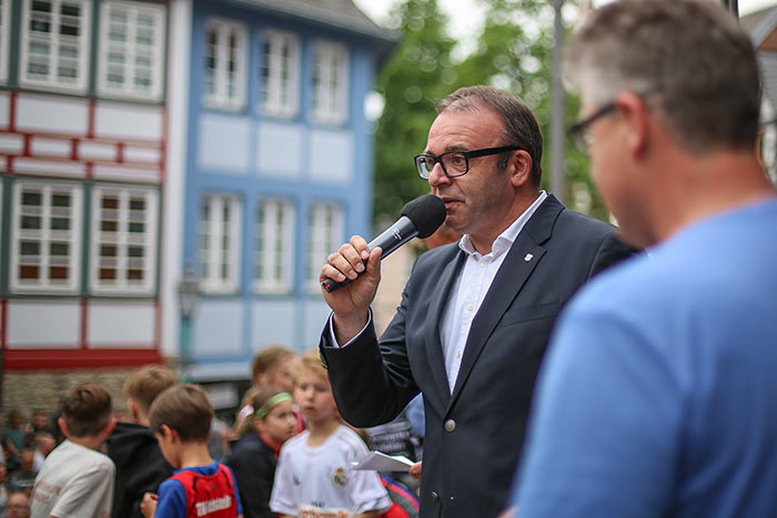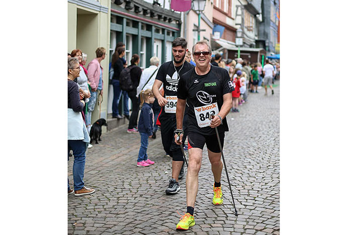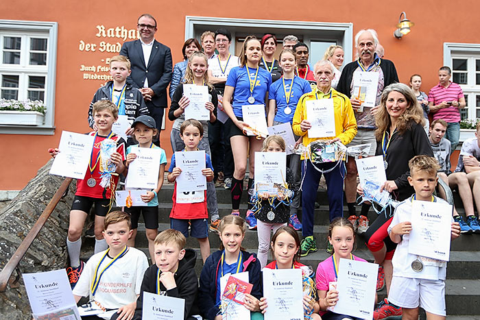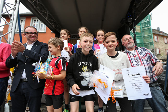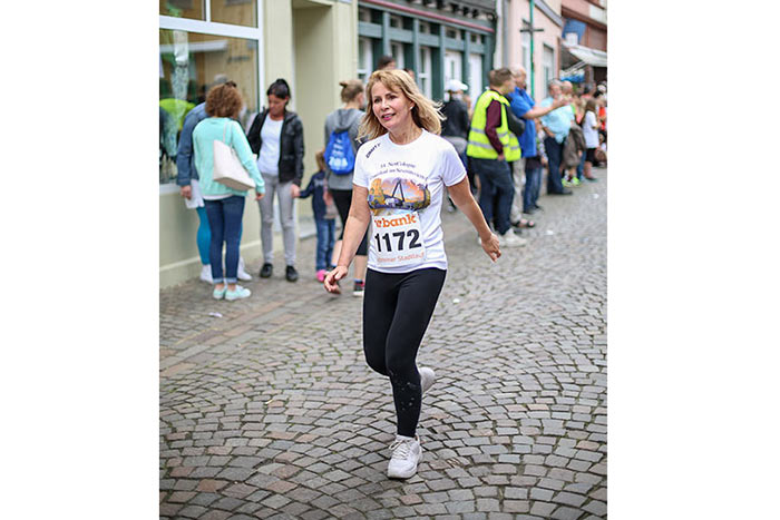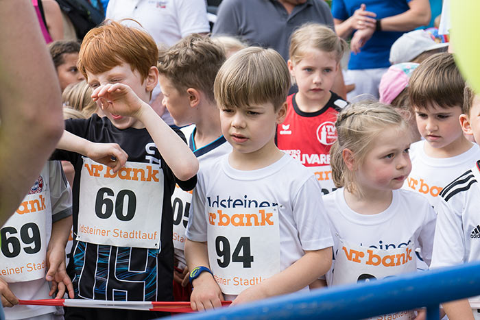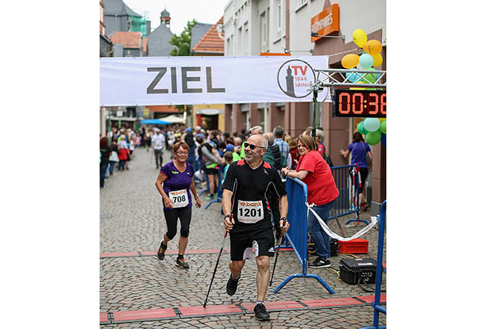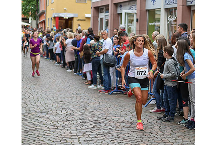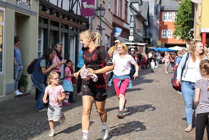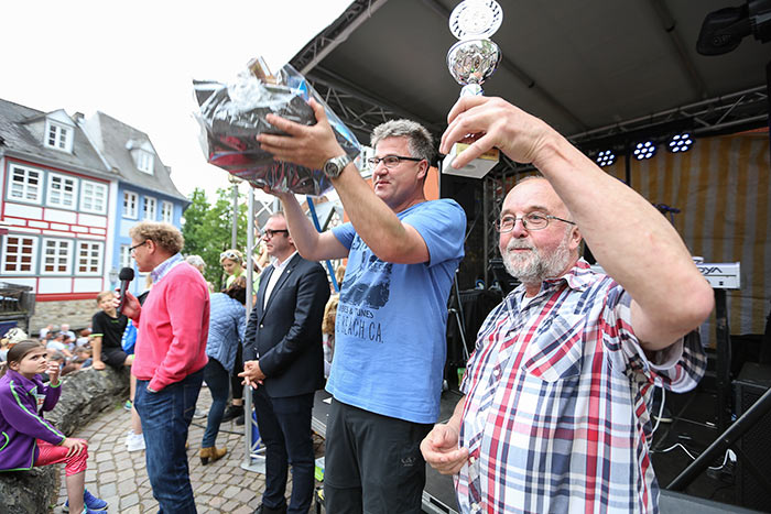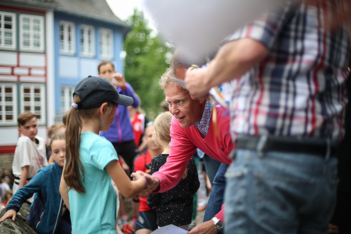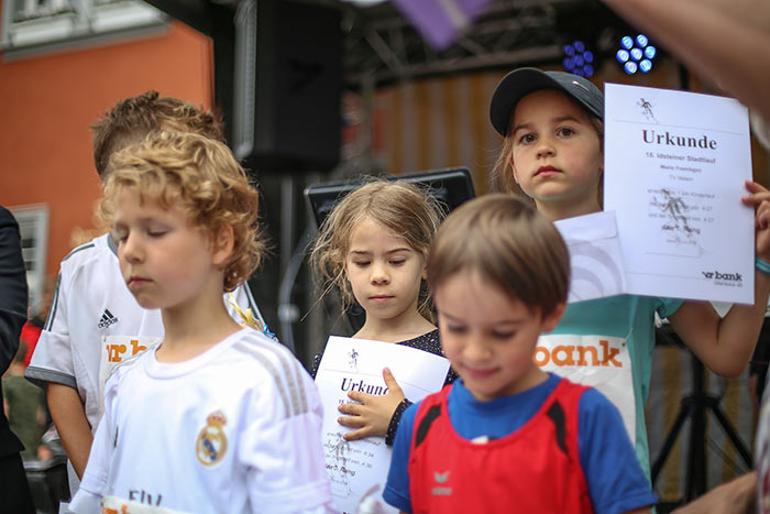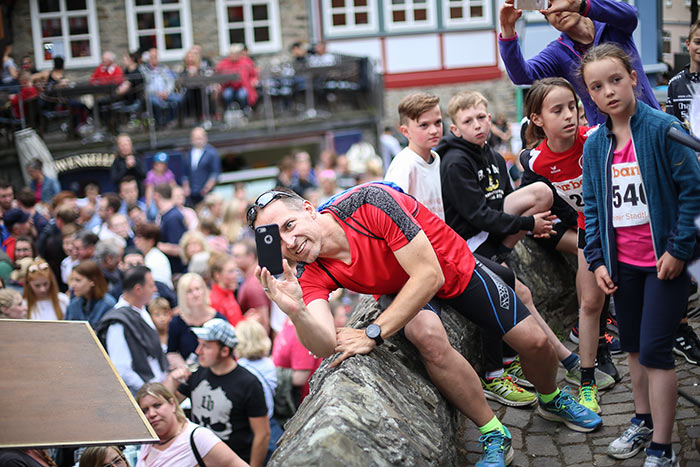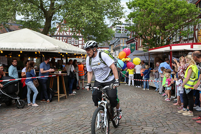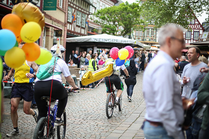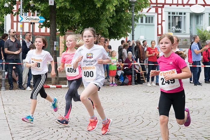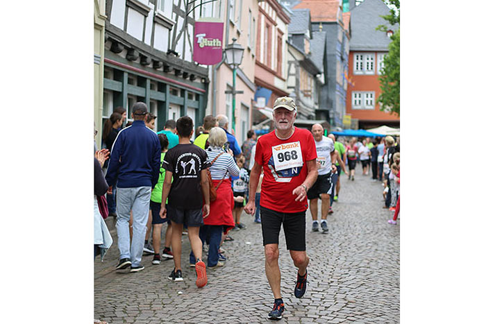 IDSTEIN – In der Altstadt stehen jubelnde Menschen, Hunderte Läufer mühen sich ab. Besonders auf den letzten Metern durch die Fußgängerzone und auf dem König-Adolf-Platz, vorbei an den Ständen des Weinfestes, werden sie durch laute Rufe nochmal motiviert. Wenn man diese Bilder in Idstein sieht, dann ist wieder Stadtlauf. Und das dieses Jahr zum 15. Mal. Längst hat sich der Idsteiner Stadtlauf, organisiert von der VR-Bank, der Stadt und dem TV Idstein, etabliert im sportlichen Veranstaltungskalender der Region. In vier Kategorien starteten insgesamt fast 1500 Läufer: Der Kinderlauf ging über die Distanz von einem Kilometer, der Schülerlauf über 2,3 Kilometer, der „Jedermannslauf“ über fünf Kilometer vom Schloss durch die Stadt bis zum Ziel in der Rodergasse. Über diese Distanz konnte sowohl gelaufen als auch gewalkt werden. Beim Kinderlauf mit insgesamt 196 Teilnehmern machten zahlreiche Kita-Gruppen mit. Ehrenamtliches Engagement, Ambition und die Bedeutung von Bewegung werden auch den Kleinsten auf diese Art und Weise als Werte vermittelt. Die größte Kindermannschaft stellte wie im vergangenen Jahr die integrative Kita „Am Gänsberg“ mit 42 Kindern. 237 Läufer nahmen am Schülerlauf teil, 952 waren beim „Jedermannslauf“ dabei.