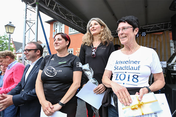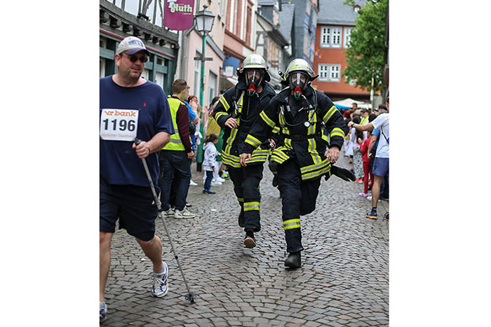 Die Siegerehrung wurde von Peter Marsch und Monika Schwarz von der VR-Bank, Bürgermeister Christian Herfurth und Carsten Freitag vom TV Idstein vorgenommen. Der Idsteiner Bürgermeister dankte den Sponsoren und insbesondere der VR-Bank für das Engagement. Seine besondere Bewunderung galt dabei dem Team der Freiwilligen Feuerwehr. 30 Läufer gingen hier an den Start – und liefen die fünf Kilometer in voller Montur mit Atemmasken und allem Drum und Dran. Für den Organisator Carsten Freitag vom TVI ist nach 15 Jahren jetzt Schluss. „Als Streckenposten habe ich angefangen – das waren tolle fünfzehn Jahre“, schaut er gerne zurück, betont aber: „Weg bin ich nicht.“