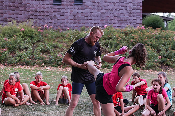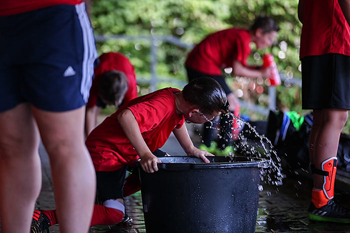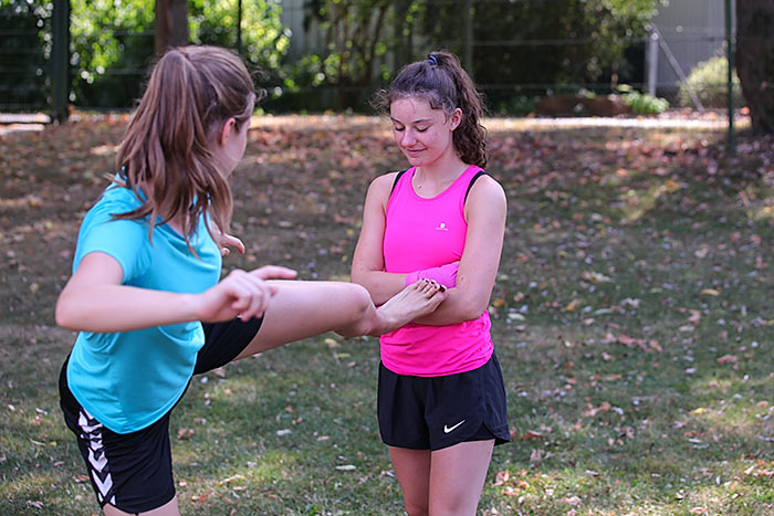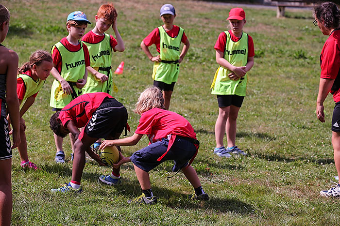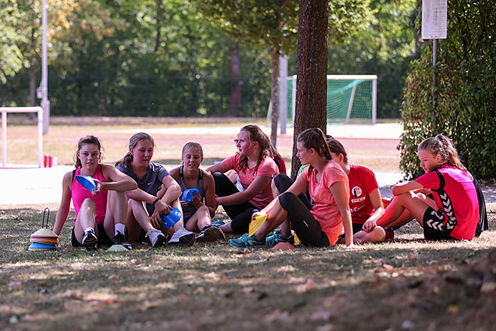 Das sieht auch eine Handballerin als Vorteil an. „Da werden ganz andere Muskelgruppen trainiert. Außerdem habe ich dreimal pro Woche Handballtraining, das reicht“, berichtet die 13-jährige Katharina. Während ihre Teamkameradinnen auch beim Sportcamp in der Halle Handball trainieren, schwitzt die Hessenauswahl-Spielerin eine Woche lang mal beim Laufen, Springen und Werfen in der strahlenden Sonne.