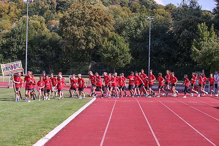 Alle Teilnehmer auf einen Blick: Etwa 200 Kinder und Jugendliche machen beim 17. Sportcamp des TV Idstein mit. Foto: Stefan Gärth