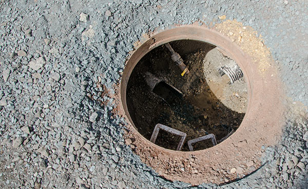 Mit einer Art Teermaschien wird das elastische Material aufgetragen.