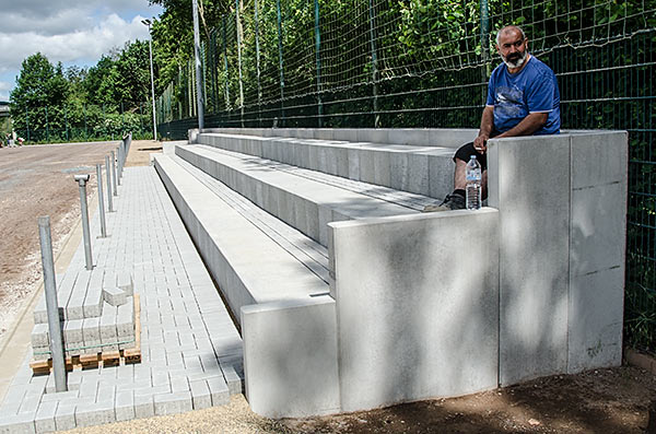 Die Tribühne ist erstellt. Es fehlen noch die Sitzschalen und die Handläufe.