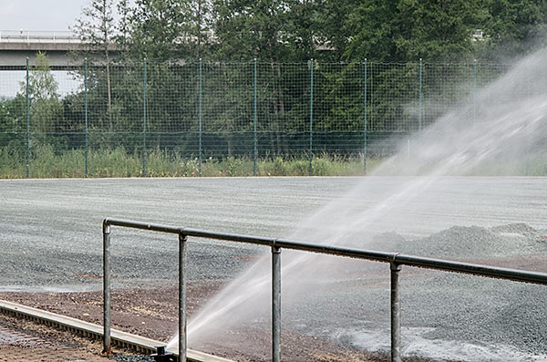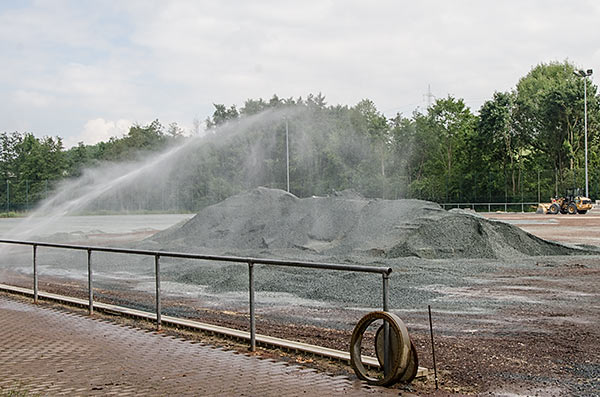 Schon auf der Hälfte des Platzes ist das Material verteilt.