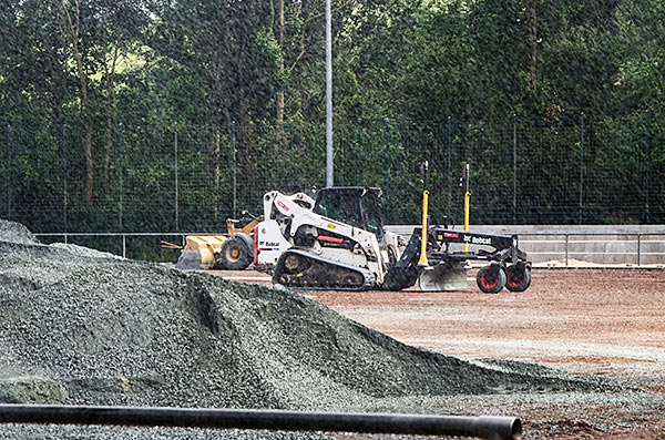 Mitte Juni wird eine Ausgleichsmasse auf dem Platz verteilt.