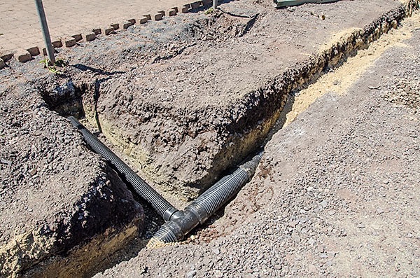 … und dann werden die Rohre in Gräben verbuddelt.