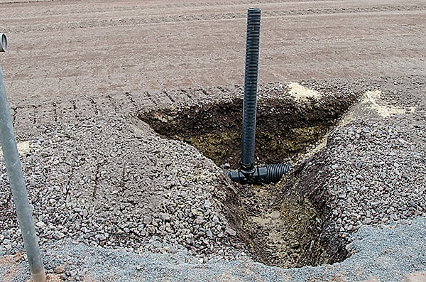 Anfang Mai werden für die Drainage Vorbereitungen getroffen. Sie dient dazu, bei Regen den Platz entsprechend zu entwässern.