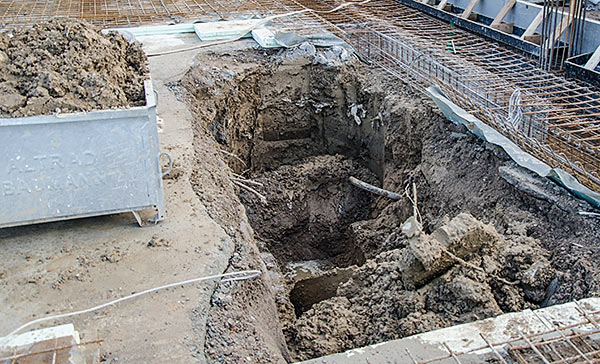 Leider wurde festgestellt, dass sich neben dem Brunnen ein Betonschacht befindet. Das bedeutet, dass Betonschacht und Brunnen komplett abgebrochen werden müssen. Dafür muss schon verlegtes Material wieder entfernt werden.