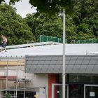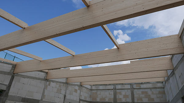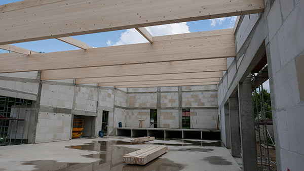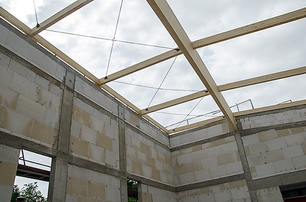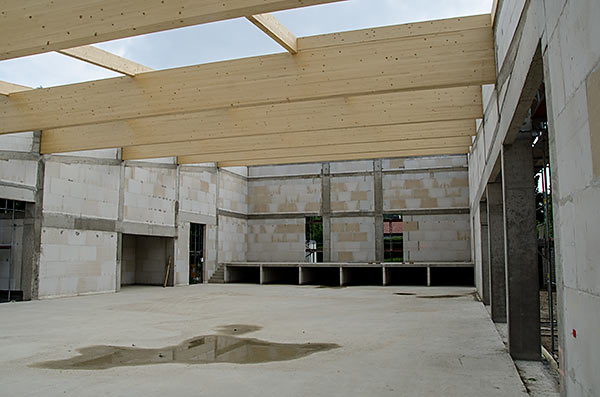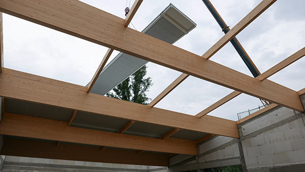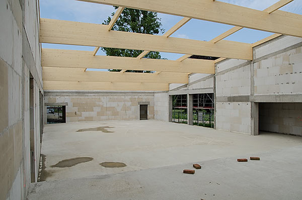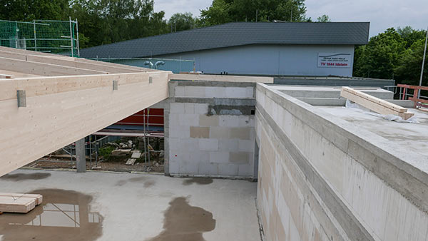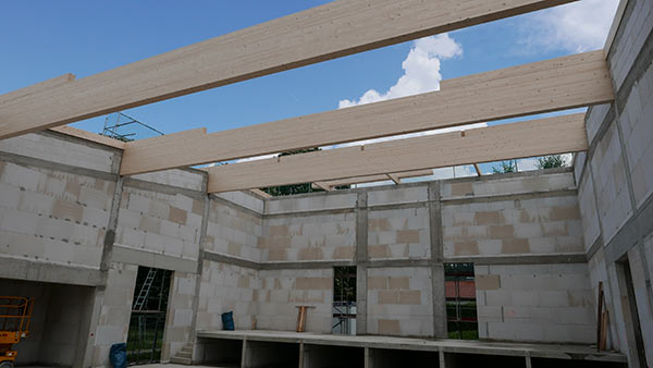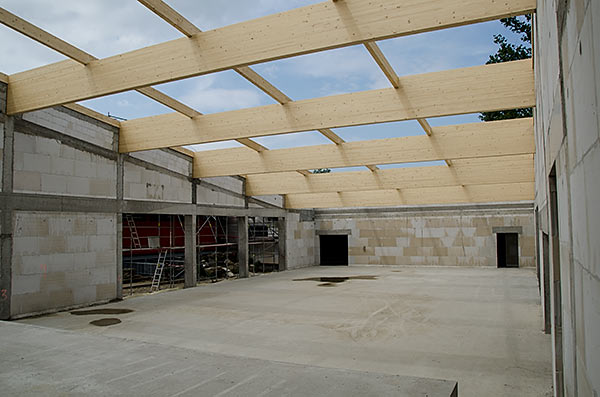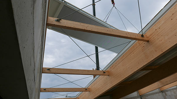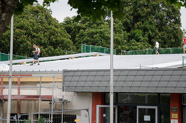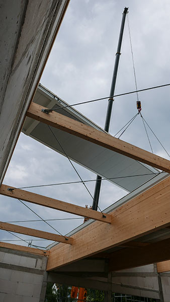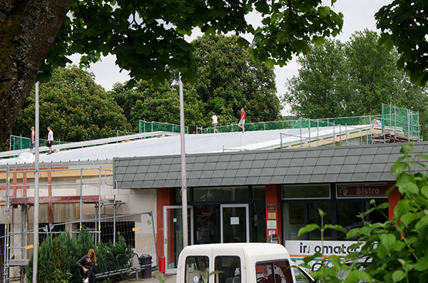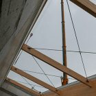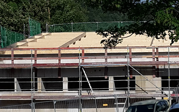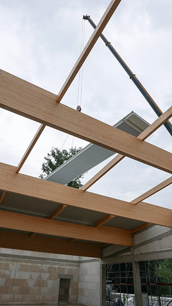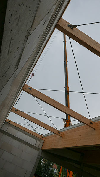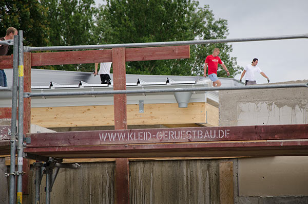 Ab 14. Mai ist es soweit: die Dachdecker kommen und bauen die Dachkonstruktion ein. Am 25. Mai war das Dach fertig.