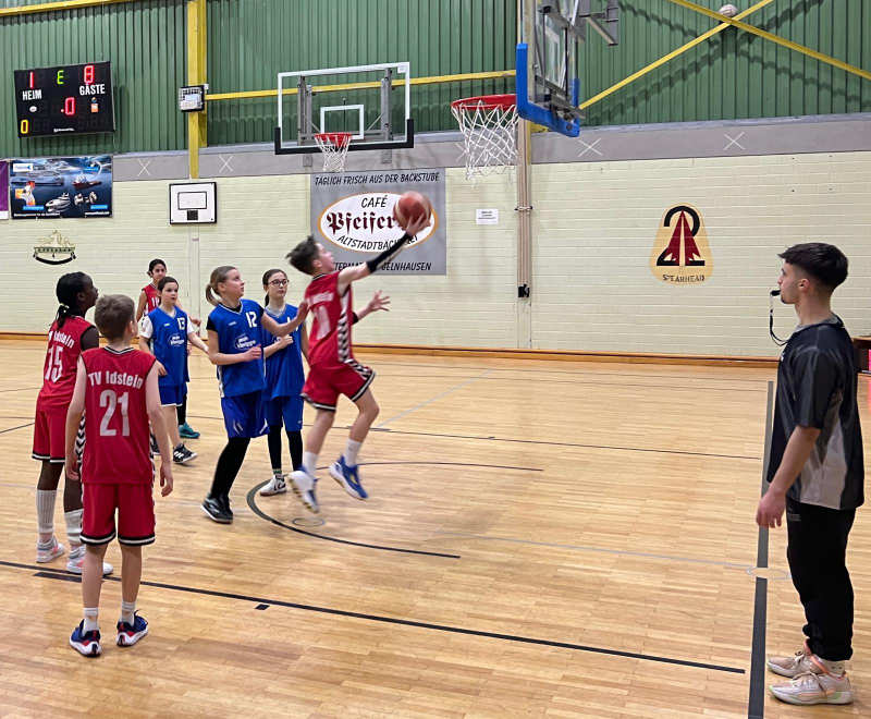 Im ersten Spiel der neuen U12-Runde im Kreis C Frankfurt musste der TV Idstein direkt sein weitestes Auswärtsspiel in Gelnhausen absolvieren und konnte gegen die ganz neu gemeldete Mannschaft BC Gelnhausen 3 mit 22:104 gewinnen – und das sogar auf ungewohnt niedrige Körbe. Auch wenn das Spiel kein Gradmesser war, konnte man erneut sehen, dass sich die Mannschaft entwickelt und es war schön, direkt mit einem Sieg in das Jahr 2026 zu starten. Wie schon im letzten Spiel des vergangenen Jahres war besonders toll, dass alle neun Kids gleichmäßige Spielanteile bekommen konnten und jeder mit einem Korberfolg etwas zum Erfolg beitragen durfte.