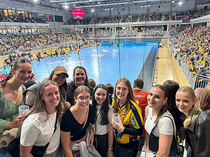 Nach gut einer Stunde Fahrt erreichte unsere Damenmannschaft den mit 3.500 Fans bereits gut gefüllten SNP Dome in Heidelberg. Schon beim Eintreffen sprang der erste prominente Blickfang ins Auge – Handballlegende Uwe Gensheimer. Die Vorfreude auf ein hochklassiges Handballspiel war groß – vielleicht konnte man sich bei den Herren den ein oder anderen Kniff abschauen.
