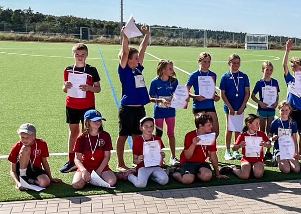 Parallel lief der Wettkampf der U10. Auch hier standen einige Wettkampf-Neulinge auf dem Platz. Mit viel Konzentration, starkem Willen aber vor allem jeder Menge Spaß wurde um jeden Meter, um jede Sekunde gekämpft und am Ende holte sich das Team einen tollen 5. Platz. Hier hießen die Disziplinen Sprint, Weitsprungstaffel, Medizinballstoßen und Ausdauerlauf – ein breites Spektrum für die jungen Sportler.
