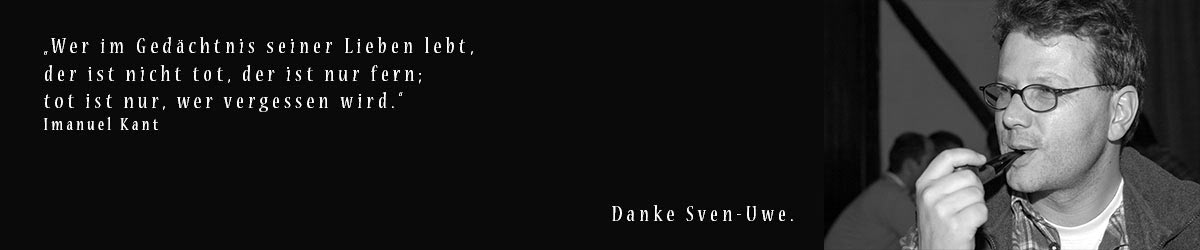 Wir haben einen sehr geschätzten, ideenreichen, engagierten und immer hilfsbereiten Mitspieler verloren. „Wer im Gedächtnis seiner Lieben lebt, der ist nicht tot, der ist nur fern; tot ist nur, wer vergessen wird.“ Imanuel Kant. In diesem Sinne werden wir Sven-Uwe ein ehrendes Andenken bewahren und ihn in Erinnerung behalten.