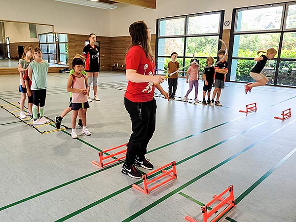Die jüngeren Kinder, im Alter von 6 bis 9 Jahren, waren besonders eifrig. Sie lernten schnell die grundlegenden Techniken des Badmintonspiels und zeigten viel Begeisterung. Es war beeindruckend zu sehen, wie schnell sie den Umgang mit dem Schläger und dem Federball erlernten. Die Trainerinnen lobten die Gruppe für ihre Disziplin und ihren Ehrgeiz. Die Entwicklung der motorischen Fähigkeiten und der Grundtechniken war deutlich sichtbar. Besonders die Teamspiele förderten den Gemeinschaftssinn und die soziale Interaktion.