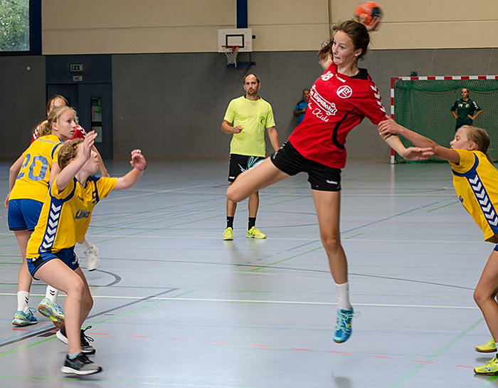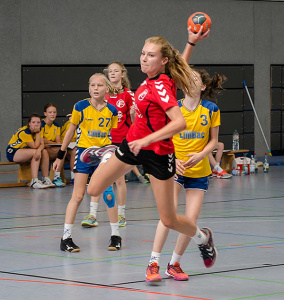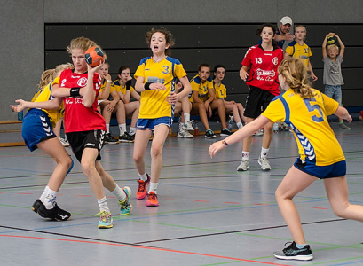 Den Abschluss des diesjährigen Hexencups machten die jüngsten Handballerinnen der weiblichen Jugend E. Erstmals lagen so viele Anmeldungen vor, dass das Turnier in zwei Hallen ausgetragen werden konnte. In zwei 5er Gruppen wurden in der Spielform 2 x 3 gegen 3 die drei Gruppenbesten ausgespielt, die dann in den Finalspielen in der Hexenturmhalle im 6+1 die finalen Platzierungen ausspielten. Am Taubenberg setzten sich die TSG Münster 2, die HSG Goldstein/Schwanheim und die TG Kastel durch.