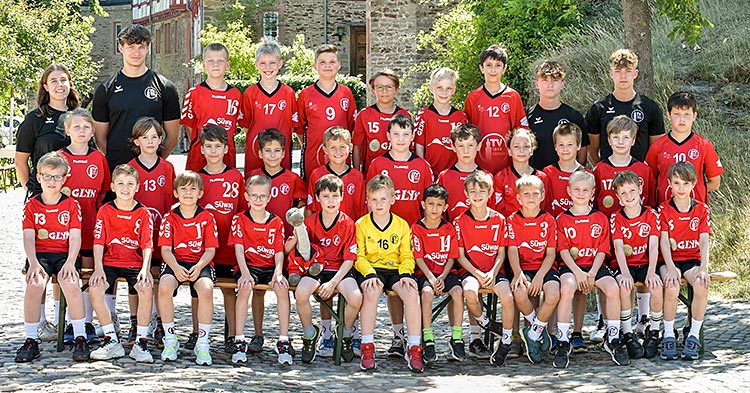 Mitte v. l.: Leonard Zeitz, Lio Sottmann, Lares Witteler, Jaro Witteler, Henry Blum, Sammy Pigors, Jarno Wieschalla, Karl Blumenroth, Henry Langlotz, Ole Kreutzmann, Maltin Kqiku
