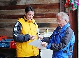 Nach der „Arbeit“ fand das traditionelle Grillfest statt, zu dem auch viele andere Abteilungsmitglieder dazu stießen. Hier nahm Ferdi Fischer die Siegerehrung vor. Conny Pendorf hatte das anschließende Grillfest mit viel Liebe vorbereitet und erhielt dafür ein kleines Geschenk.