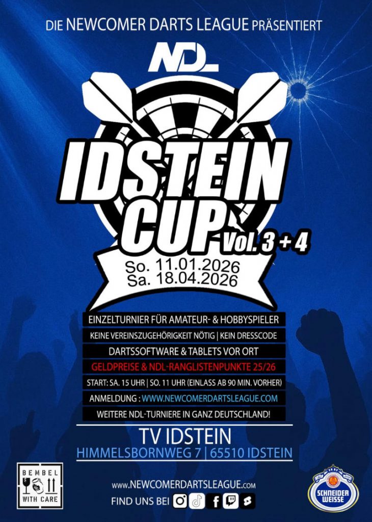 Zum Start ins neue Jahr fand am Sonntag, den 11.01., der 3. Idstein Cup der NDL (Newcomer Dart League) im...