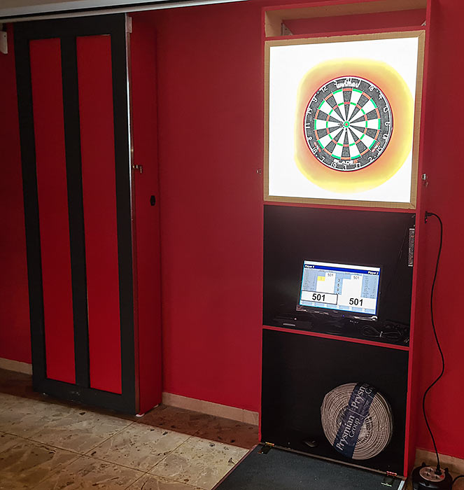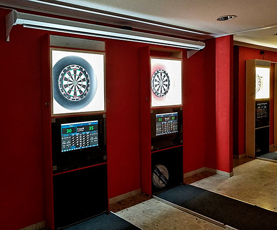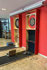 Am Anfang warfen die Dartmitglieder ihre Pfeile noch auf mobile Dartscheiben. Jetzt ist das vorbei.