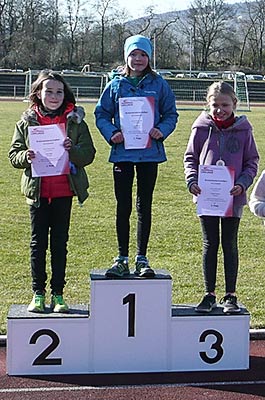 Unter die ersten drei Plätze kamen hierbei Sarah Hunsche (W11, Platz 1 Hochsprung, Platz 1 50m, Platz 1 Ballwurf), Jule Meißner (W12, Platz 1 800m, Platz 3 Weitsprung, Platz 3 75m), Leo Ertl (M10, Platz 2 Ballwurf, Platz 3 800m), Linus Wengel (M10, Platz 33 Weitsprung), Amelie Jetter (W11, Platz 1 Weitsprung, Platz 3 50m, Platz 3 Ballwurf), Charlotte Arens (W11, Platz 1 800m, Platz 3 Hochsprung), Leonie Drescher (W11, Platz 3 Hochsprung, Platz 3 Weitsprung), Lea Weygandt (W10, Platz 2 Weitsprung, Platz 3 50m, ), Marie Labermaier (W10, Platz 1 800m), Lina Wissig (W10, Platz 800m), Sophie Köble (W10, Platz 2 Hochsprung, Platz 3 Ballwurf), Luisa Wissig (W14, Platz 1 800m).