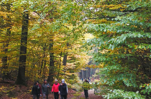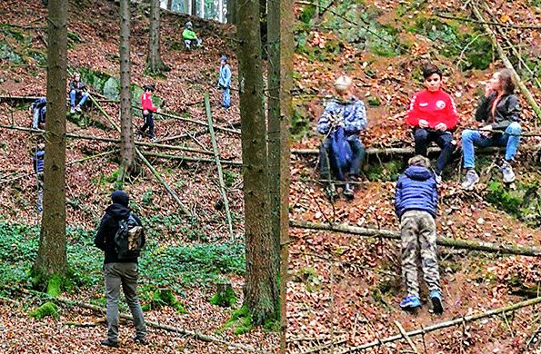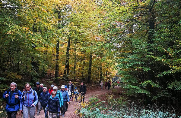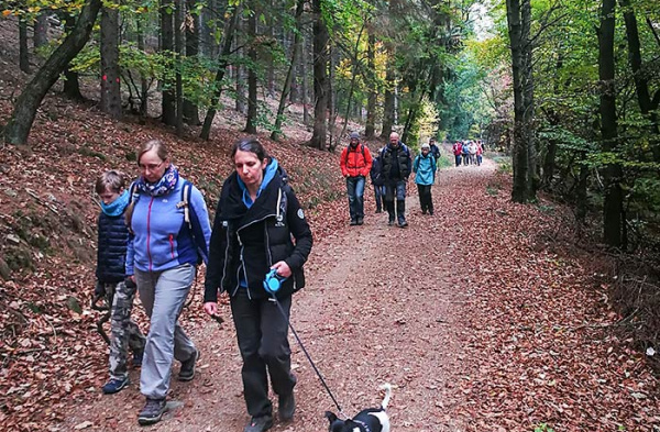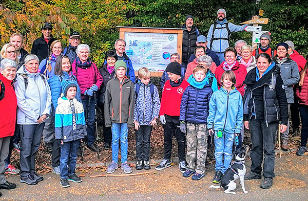 TVI-Familien-Wanderung mit 32 Teilnehmern: 25 Erwachsene, eine Jugendliche, sechs Jungen und ein Hund unter der Führung von Fr. Hoof und Hr. Leibenguth.
