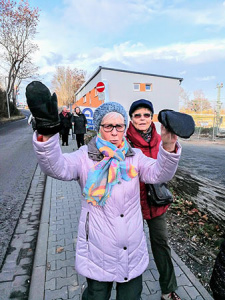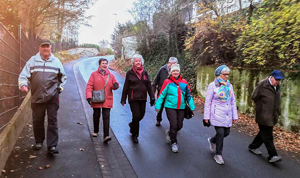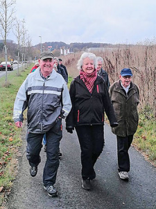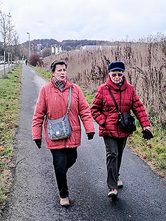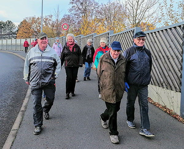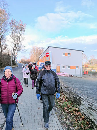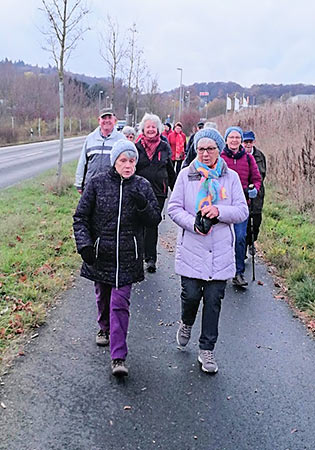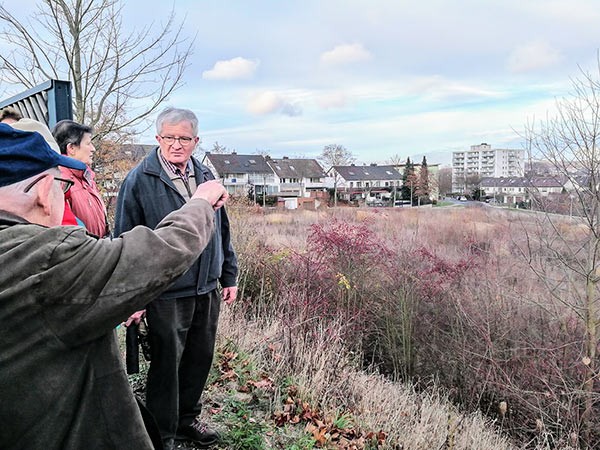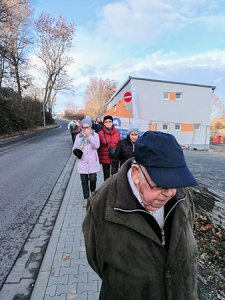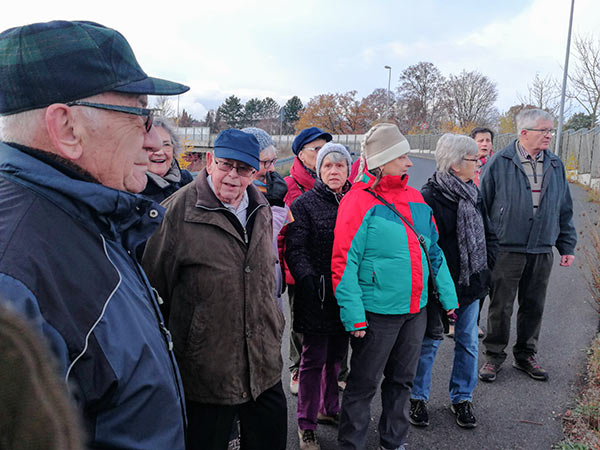 Start am 1. Dezember 2018: Vom Startpunkt Wagenerstrasse ging es über die Hermann-Löns-Strasse bis zur Friedensstrasse, der wir bis zur Strasse Auf der Au folgten. Auf dieser gingen wir ein kurzes Stück und über den abknickenden Fußweg kamen wir zum „Lippenstift.“ Hier folgten wir der oberen Wiesbadener Straße bis zum Erivan-Haub-Kreisel, gingen in die Straße Am Bahndamm, kamen an dem neuen Tafel- und Kleiderlager-Gebäude und dem Kulturbahnhof vorbei, stießen am Bahntunnel auf die Richard-Klinger-Straße und folgten ihr bis zur Südtangente.
