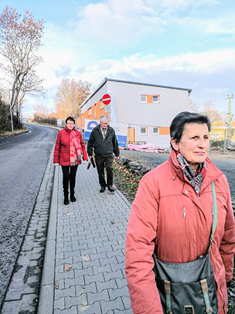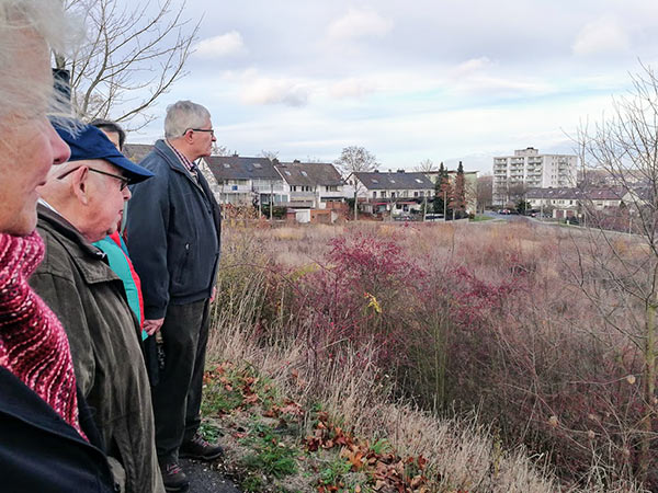 Dort folgten wir der Südtangente in Richtung Amerika-Kreisel, auf der Hälfte des Wegs kam ein Aussichtsstopp, wo Herr Pfeiff die Lage des geplanten neuen Wohnungsbau-Gebietes „Am Höllgraben“ (gegenüber der Helios Klinik Idstein) erklärte.