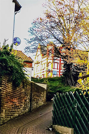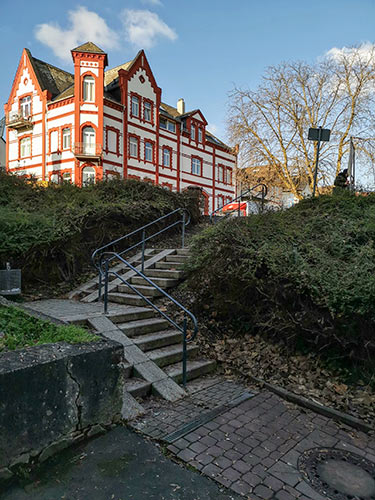Den Veitenmühlberg gingen wir hinunter und überquerten unten die Grunerstrasse, von dort über den Steilen Weg und die Treppen zur die Wiesbadener Straße.