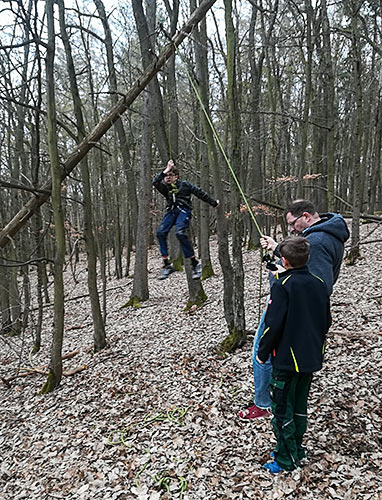 Andere übten das Abseilen am Hang, bauten eine Kugelbahn, Hütten oder hatten Spaß mit einer selbstgebauten Baumschaukel.