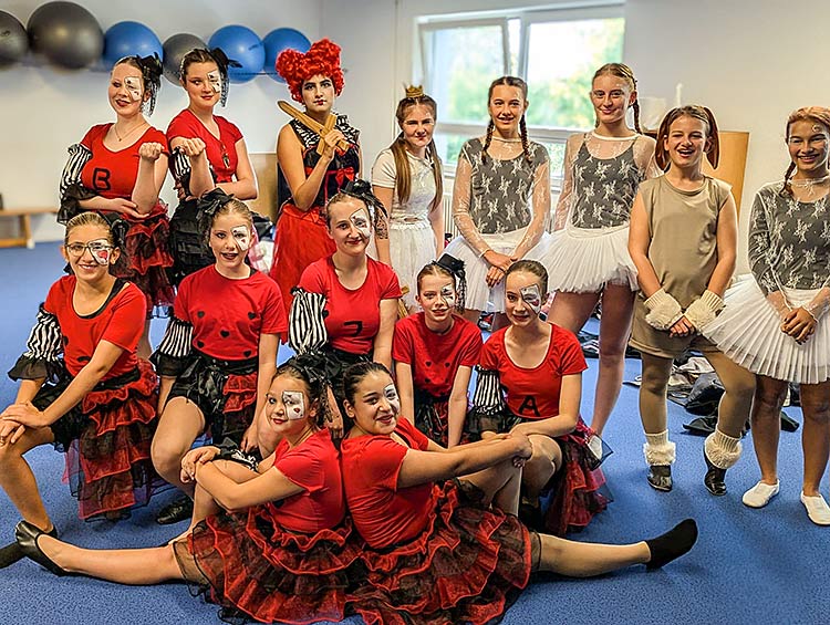 Die Vorbereitungen inklusive aufwendigem Make Up begannen schon um 11 Uhr vormittags in Idstein in der Halle. Passend zum Tanz wurden alle in Karten der roten Herzkönigin oder das Gefolge der weißen Königin aus Alice im Wunderland verwandelt.